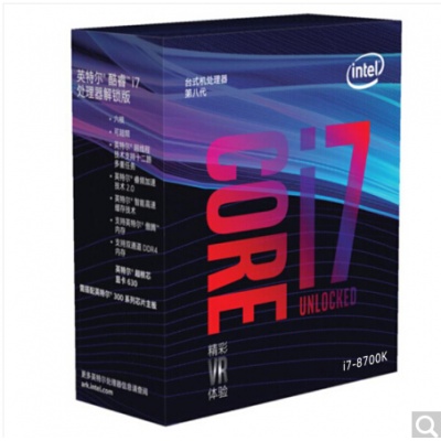 • 商品名称:英特尔(Intel) i7 8700K 酷睿六核 盒装CPU处理器