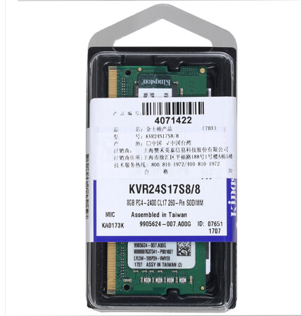 • 商品名称:金士顿(Kingston)DDR4 2400 8G 笔记本内存
