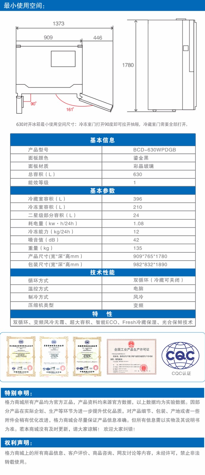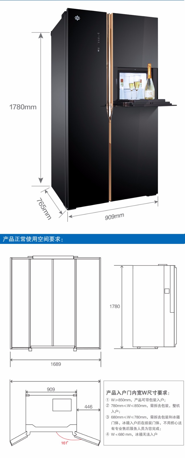 • 商品名称:晶弘对开门冰箱_Fullmotion变频压缩机_BCD-630WPDGB 630L大冷冻空间 特设轻触式吧台 1天约1度电 鎏金黑_9511352001