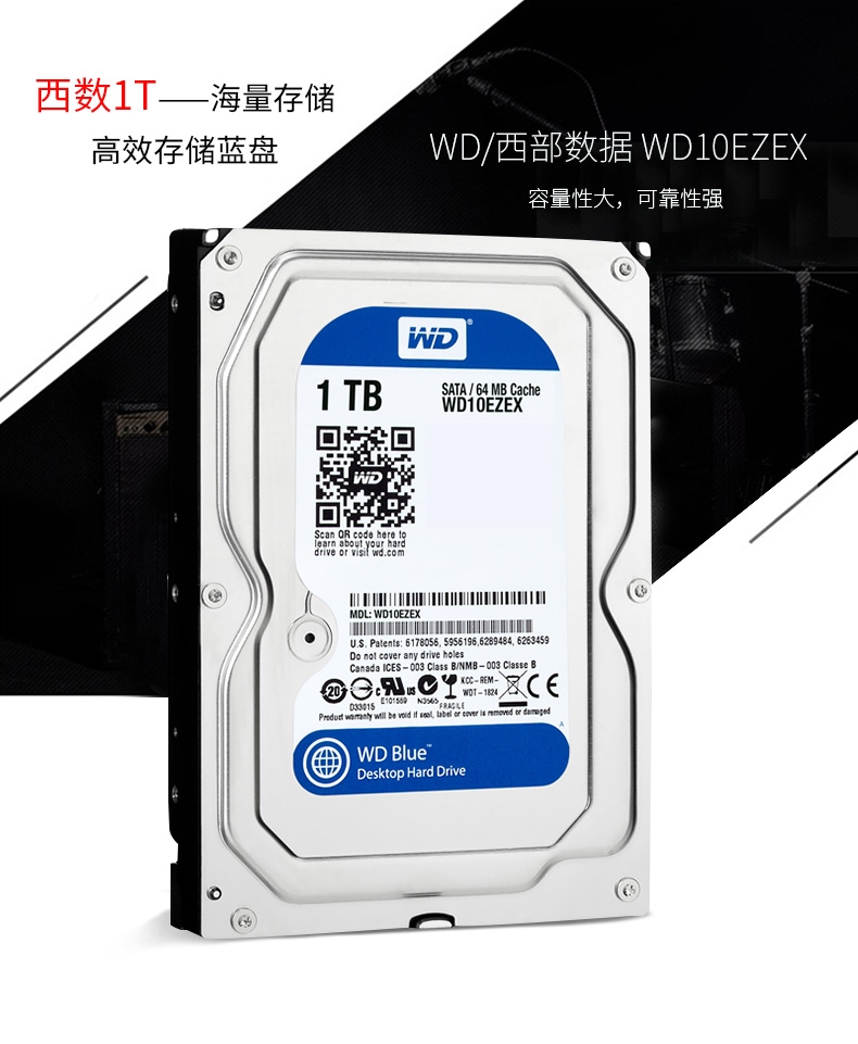 台式机硬盘,西部数据1T机械硬盘。