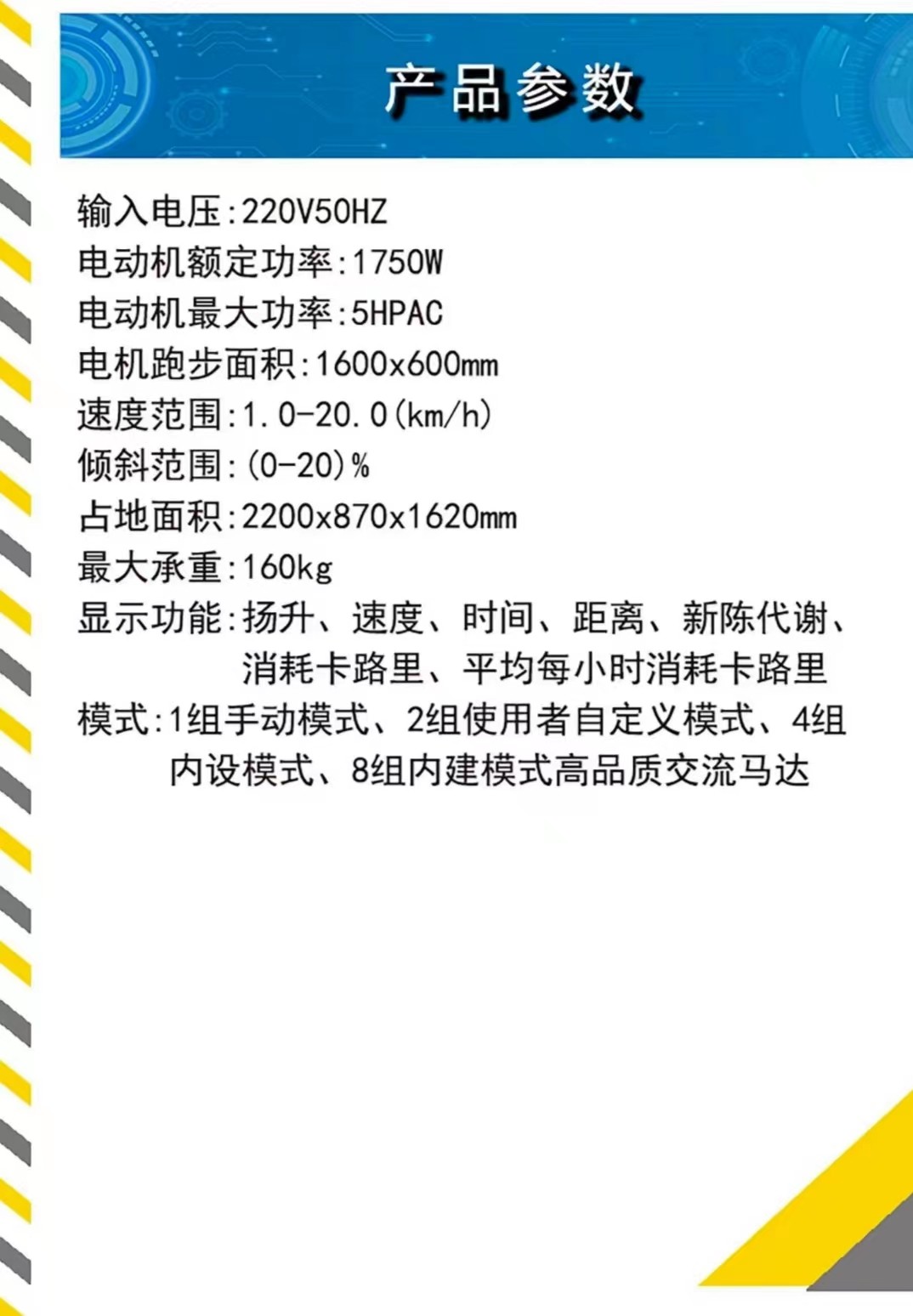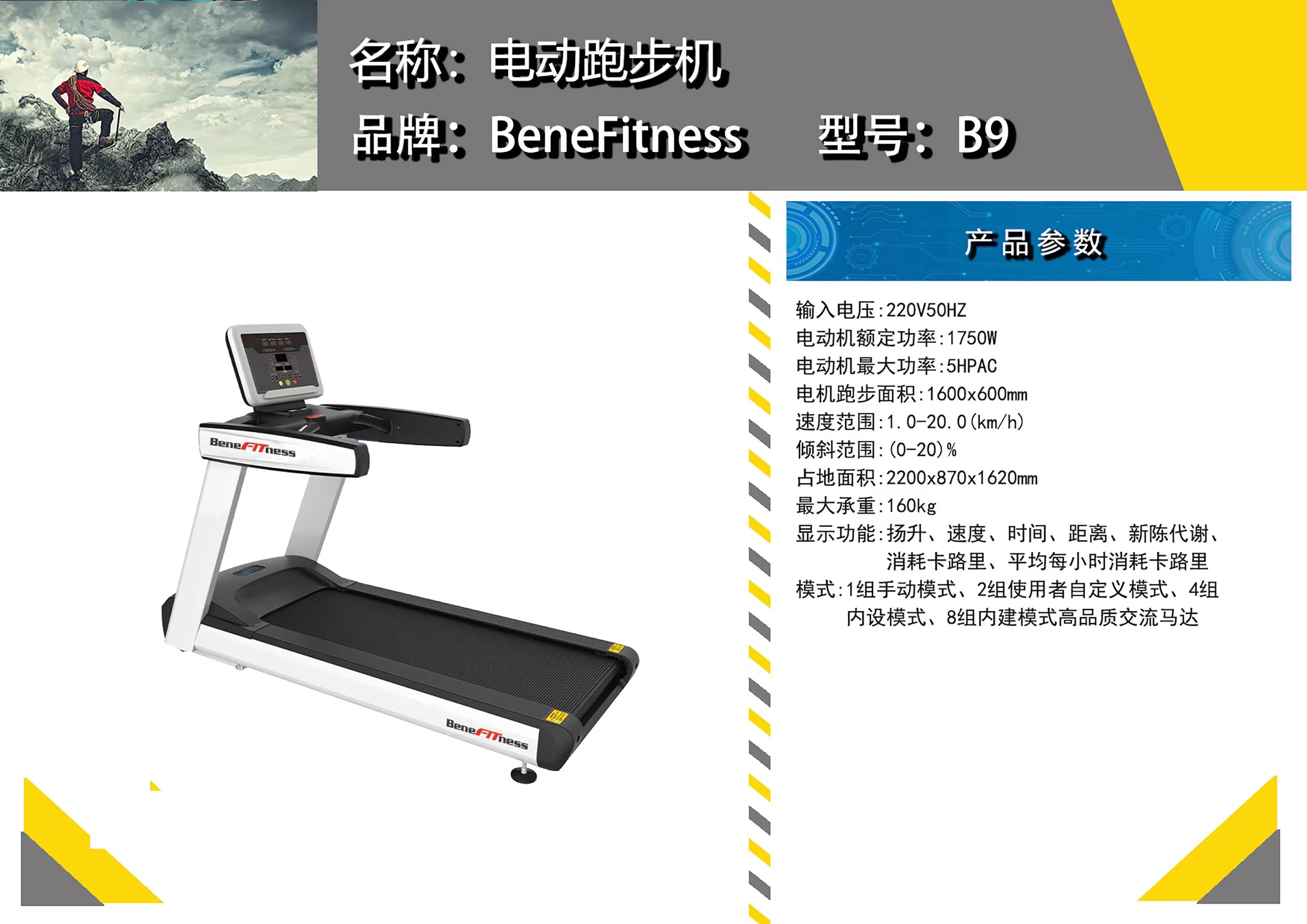 BeneFitness B9电动跑步机,参数见图。