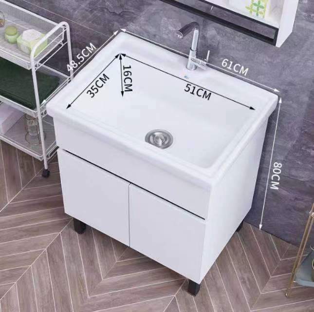 洗手盆柜实木防潮阳台洗衣柜卫生间陶瓷洗衣池洗衣槽48.5×61×80cm