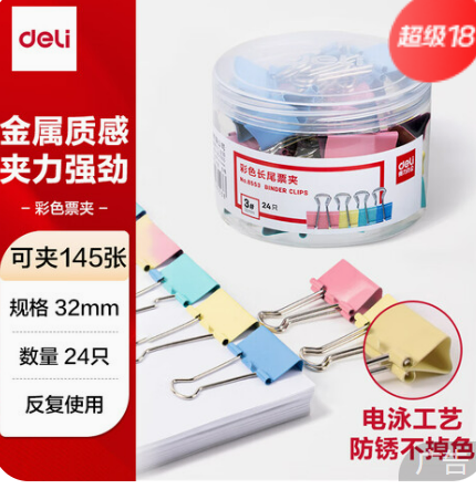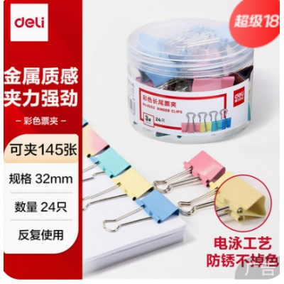 • 商品名称:得力8553-3#(24个一筒)长尾夹