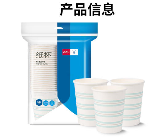 得力19203纸杯(白)(50只/包)228mlAPP240g纸