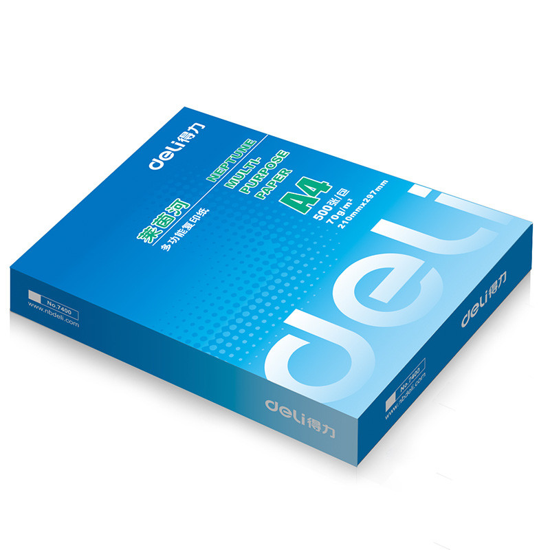 • 商品名称:得力(deli) 7400 A4 莱茵河复印纸 70g 500张/包 单包装