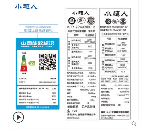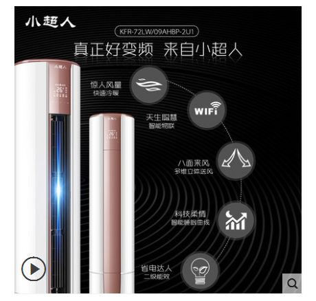 • 商品名称:海尔出品 小超人 KFR-72LW/09AHBP-2U1 3匹立式圆柱冷暖空调柜机