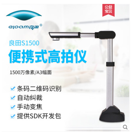 • 商品名称:良田高拍仪S1500万高清彩色办公A3扫描仪便携式文件图片拍摄仪